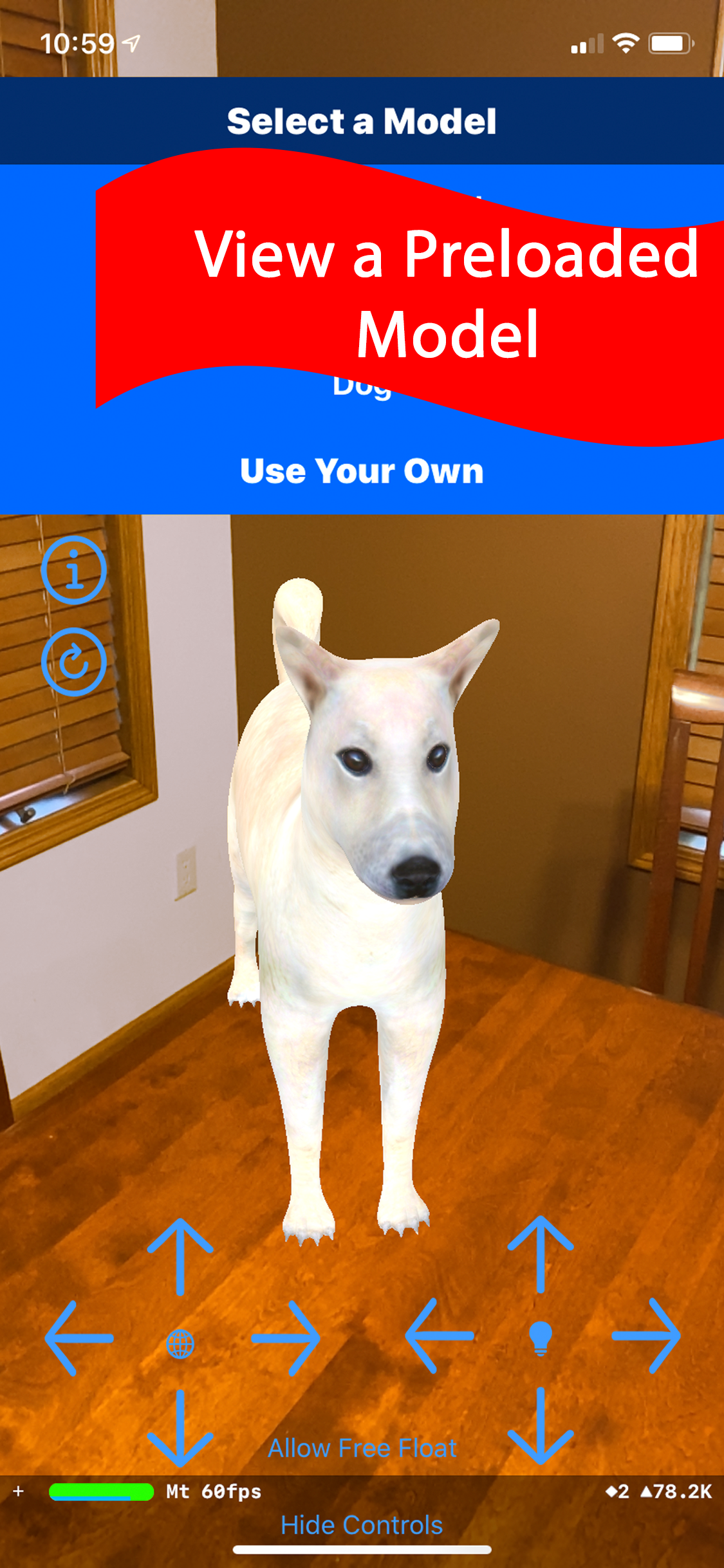 Select a preloaded model, or upload your own with one of the supported file types: (.dea, .usdz, .usda, .usd, .usdc, .obj & .mtl, .abc, .ply, .stl, .scn)