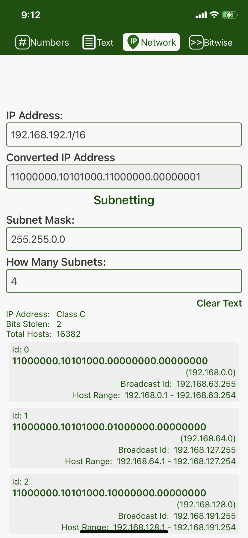 - Shows Subnet IDs for each subnet in binary and decimal
