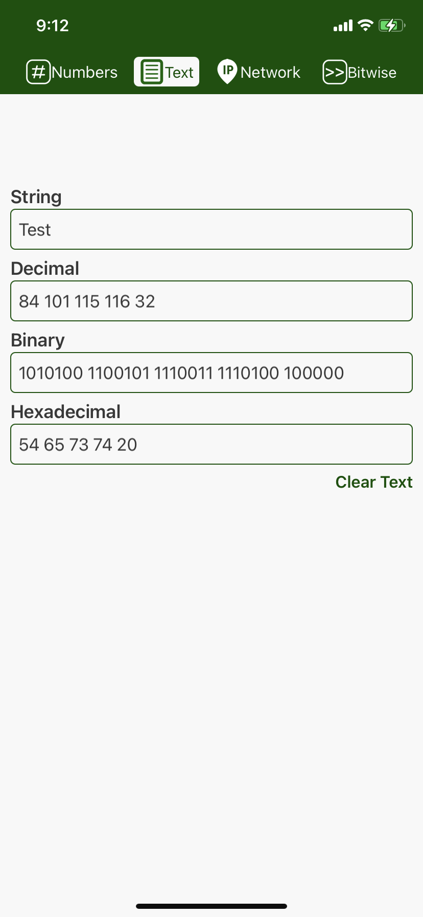 - Added binary conversions for text.