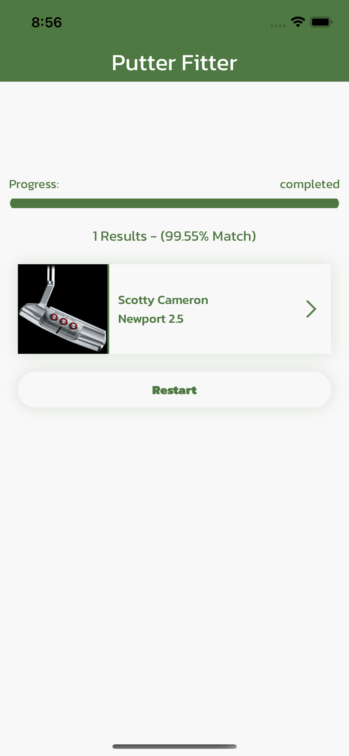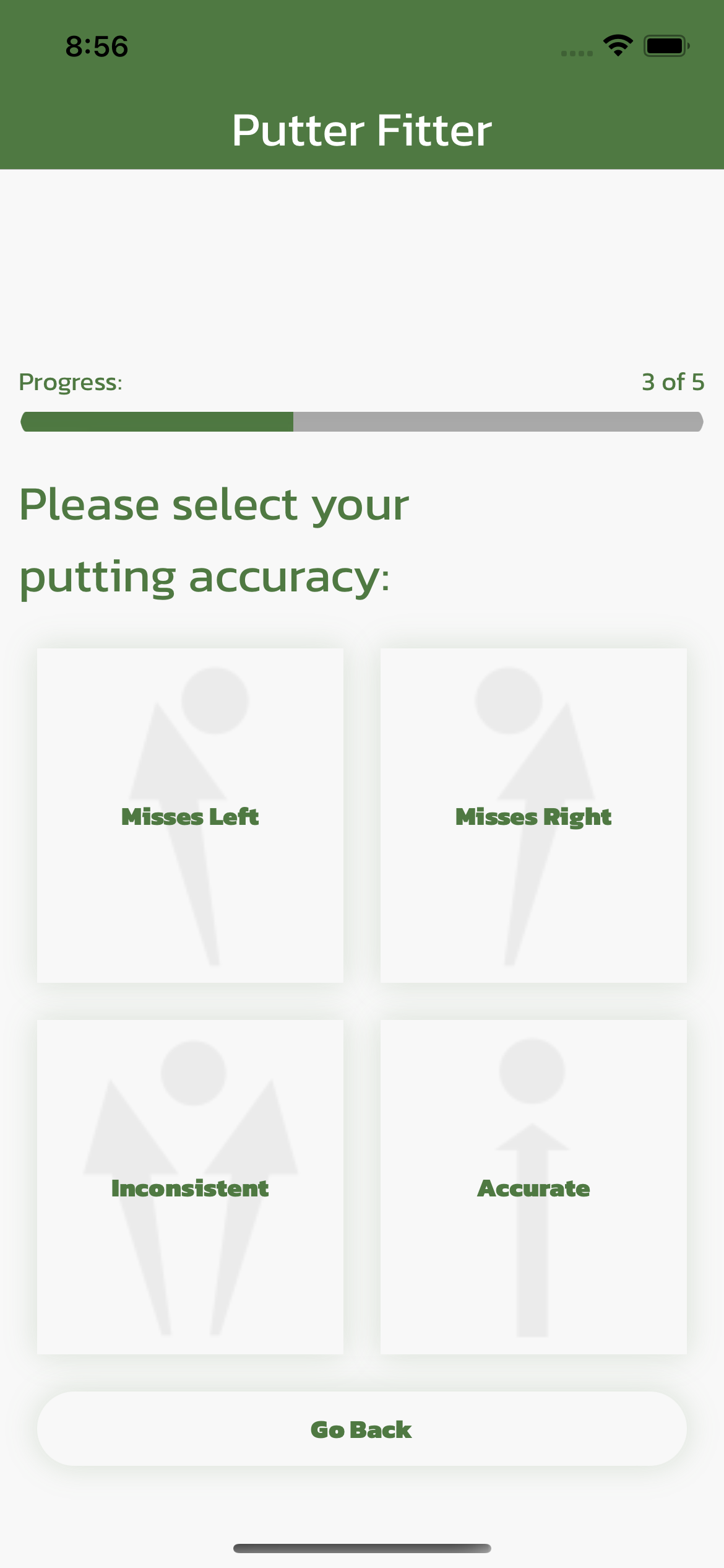 Answer 9-10 simple questions about your putting game. After that your answers are input into the AI and the best fitting putters for your game are output.